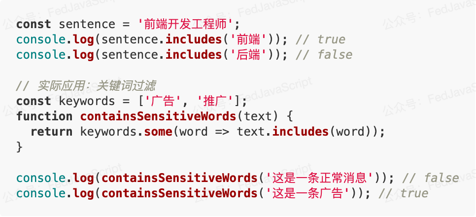includes方法为字符串搜索提供了一个简单直观的解决方案,比indexOf更易读和使用。