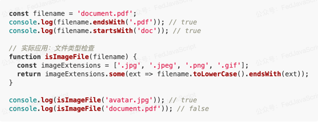 这两个方法为字符串的开头和结尾检查提供了简洁的解决方案,特别适合处理文件名、URL等场景。