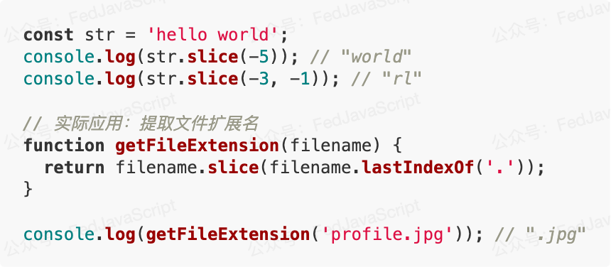 使用负数索引可以从字符串末尾开始计数,这在需要截取最后几个字符时特别有用。