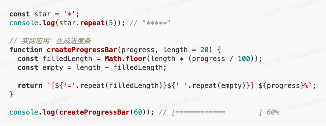 repeat方法让字符串重复变得简单直接,常用于生成分隔符、填充字符等场景。