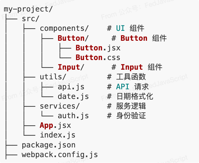 • 采用标准化的目录结构,例如 src/components , src/utils , src/services 等。