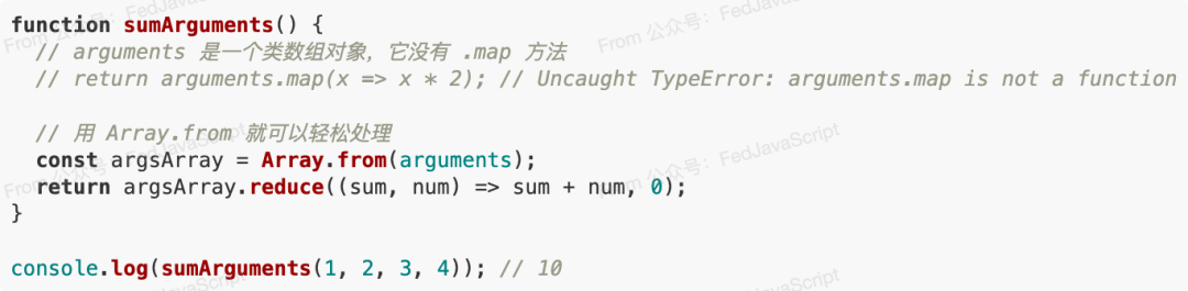 这个用法虽然不常用,但它绝佳地展示了 Array.from() 的灵活性和表现力,是面试中展示我们技术深度的小亮点。