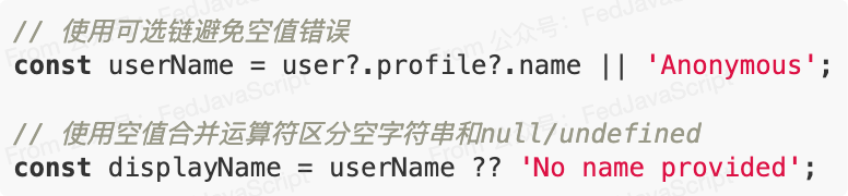 5. 使用可选链操作符(?.)和空值合并操作符(??)