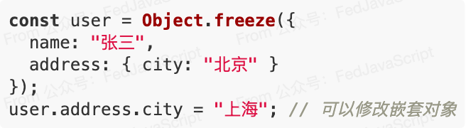 但要注意, Object.freeze() 只是浅冻结: