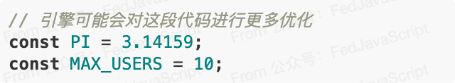 一个常被忽略的事实是,在某些 JavaScript 引擎中, const 声明可能会有轻微的性能优势: