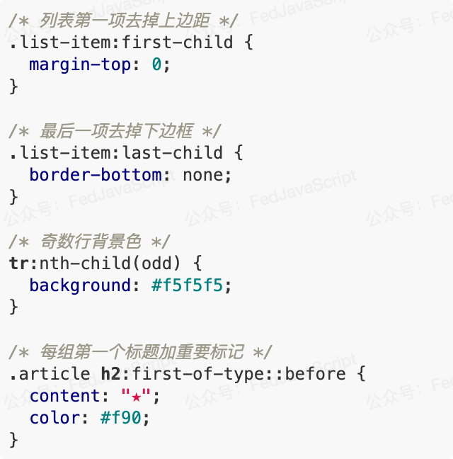 这些选择器就像一个智能助手,自动识别元素的位置并应用相应样式,再也不用手动标记了。