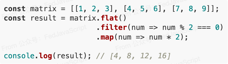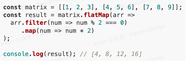 console.log(doubledEvens); // [4, 8, 12, 16]