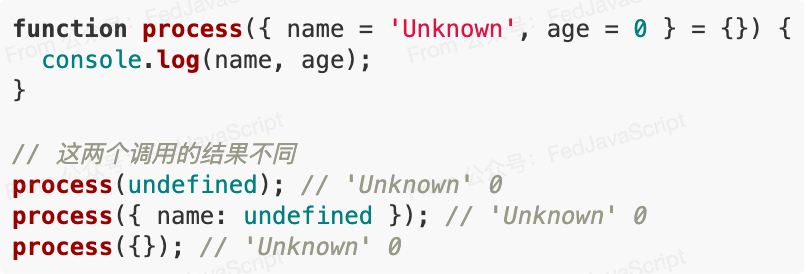 参数默认值与解构默认值的组合可能会让人困惑,特别是当需要区分”未提供参数”和”提供了含有undefined值的参数”时。