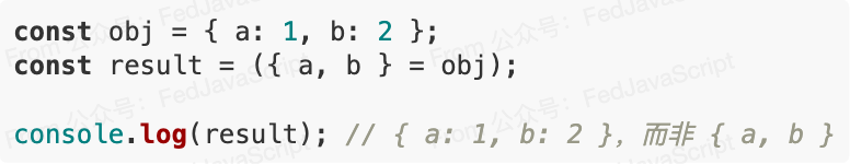 解构赋值的返回值是等号右侧的值(整个对象),而不是解构出的变量集合,这一点经常被误解。