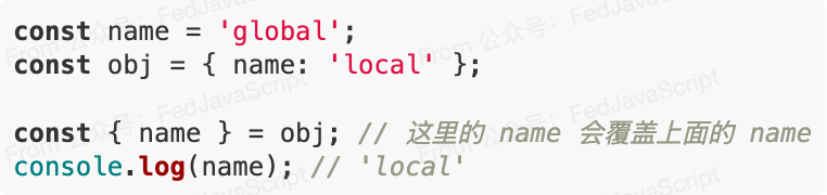 当解构属性名与已有变量名冲突时,原变量会被覆盖,这可能导致意料之外的问题。