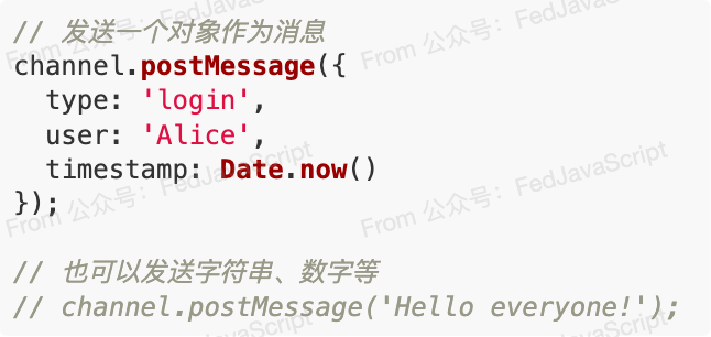 postMessage() 的强大之处在于它可以发送各种复杂的数据结构,包括对象、数组、Map、Set、File