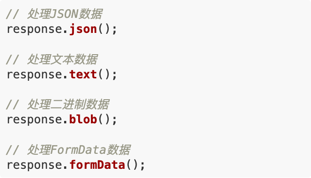 fetch返回的Response对象提供了丰富的方法来处理不同类型的响应数据: