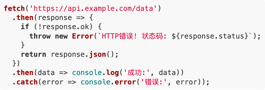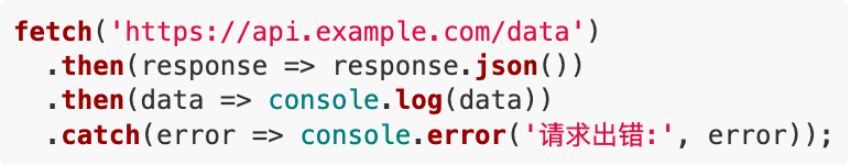 Fetch API使用Promise,使得处理异步操作变得更加简洁明了: