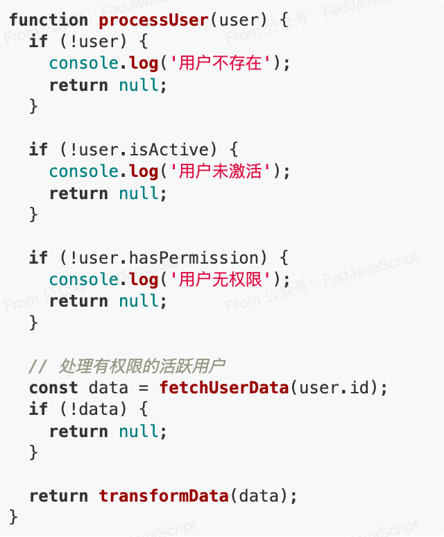 - 扁平化代码结构:通过提前返回,避免了深层嵌套,代码结构更扁平