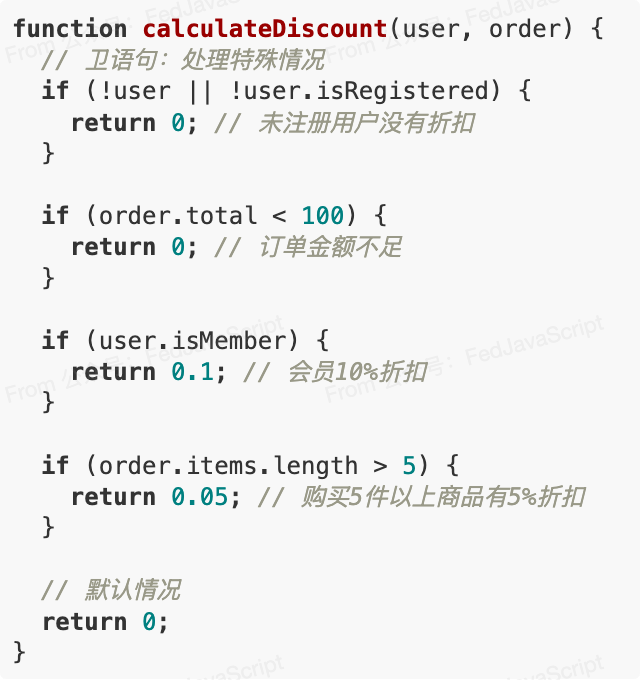 Clauses)模式。它的核心思想是:先处理所有特殊情况和边界条件,然后再处理主要逻辑。