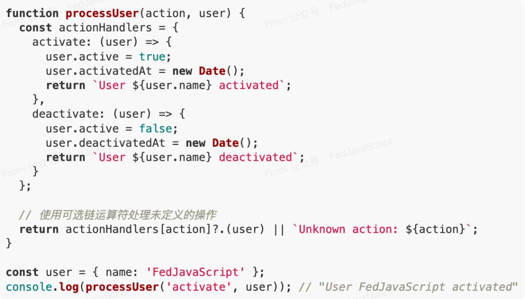 如果每个分支包含更复杂的逻辑,可以将函数作为对象的值: