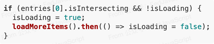 注意代码中的 isLoading 状态锁,它防止在前一批数据加载完成前触发新的请求: