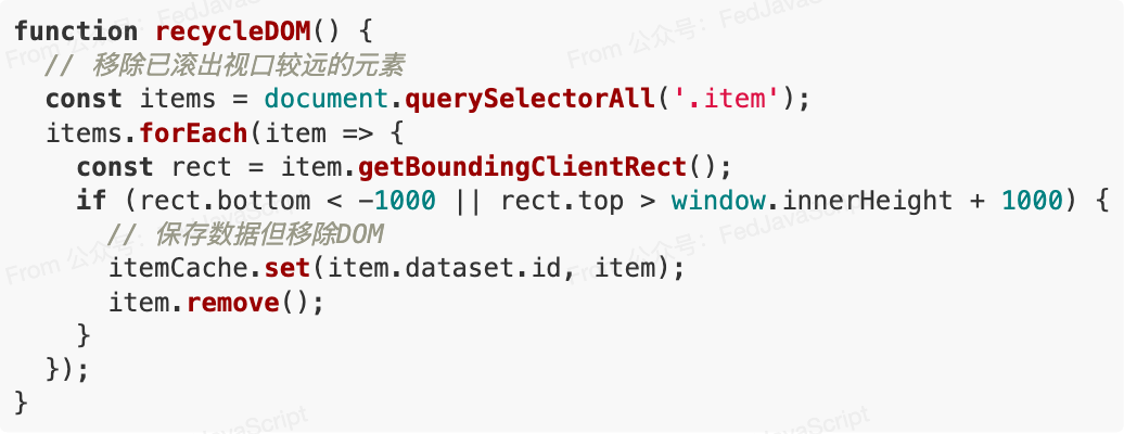 这种技术被称为”DOM回收”,确保DOM树的大小保持在可控范围内。