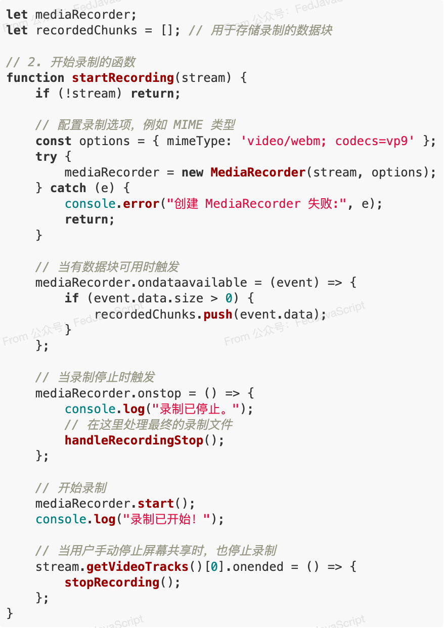 3. ** 用户授权 ** :始终在用户明确操作后才调用 getDisplayMedia ,并清晰地告知用户为何需要此权限。