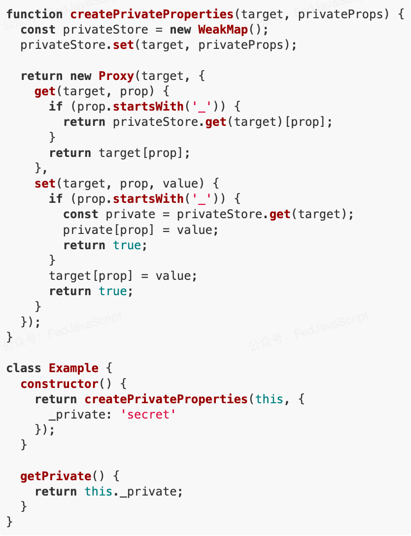 在类私有字段还未普及之前,可以使用 Proxy 来模拟私有属性: