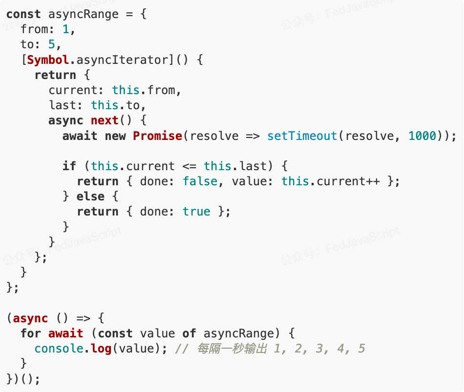 你可以使用 Symbol.asyncIterator 创建自定义的异步迭代器: