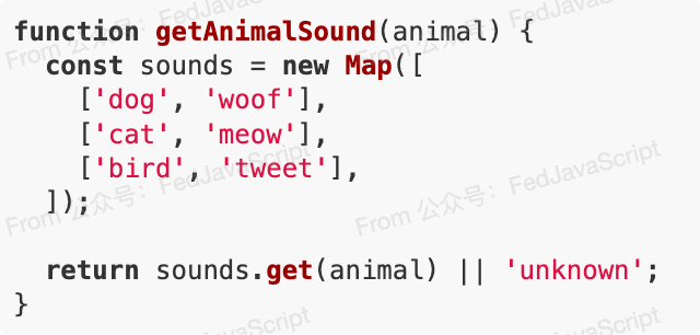 有时,一长串的 if...else if...else 结构,实际上可以用更优雅的数据结构来代替,比如 Map 或对象字面量。