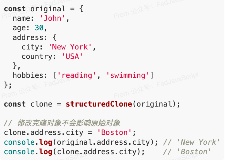 方法,现在它已被所有主流浏览器和Node.js支持。这个方法提供了一种高效、标准化的方式来创建复杂JavaScript对象的深拷贝。