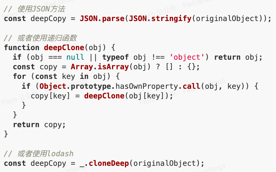 回顾一下,我们通常使用以下方法来实现深拷贝: