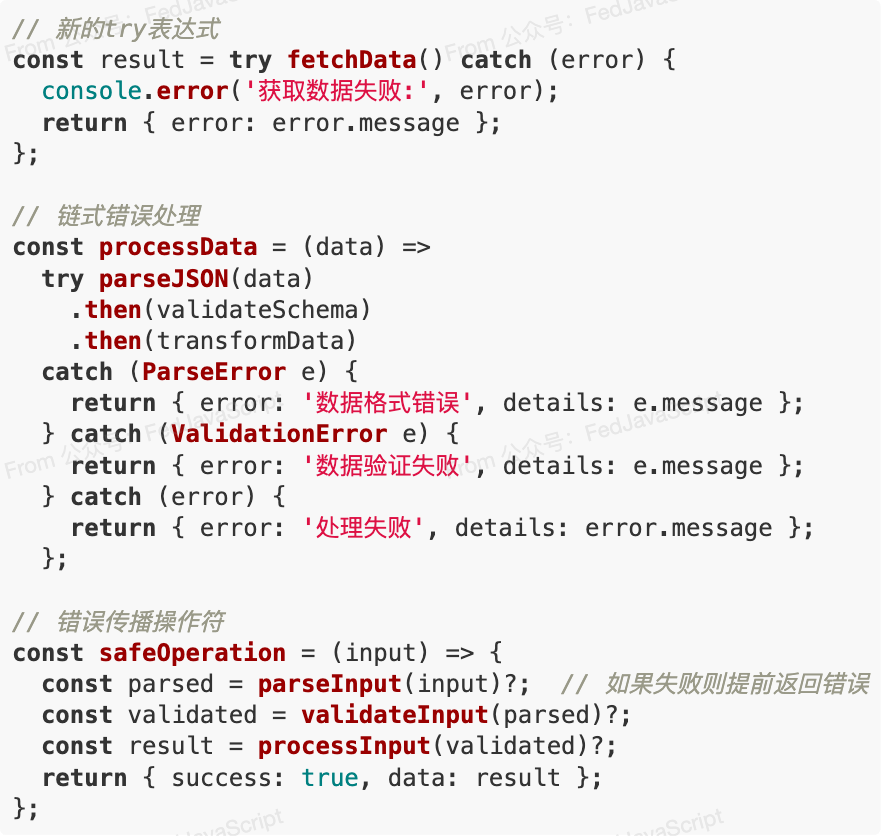 新的错误处理语法让异常处理变得更加直观: