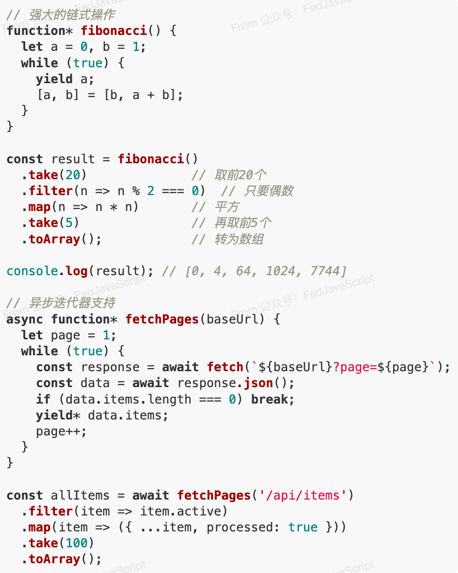 迭代器获得了类似数组的链式方法,让数据处理更加流畅: